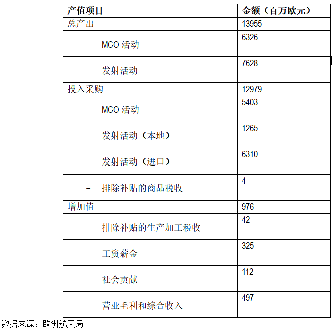 首先,服务发射任务和维持发射场地运营环境(Maintenance of operational conditions,简称MCO)两大产业类型共同发展是法属圭亚那航天经济的重要特点:根据欧洲航天局统计,2000年-2012年期间CSG每年的发射任务数量波动较大,部分年份甚至仅有3次发射活动。因此,在发射活动低谷期,以维护发射场运营为服务对象的相关产业价值得以彰显。发射场运营的衍生产业涵盖安全环境、生态环境和人居环境等等,从产业角度来看体现在安全测试设施部署调试、绿色电力系统部署、碳中和改造、生物环境多样性补偿等项目中。从经济贡献度来看,服务发射任务和MCO两大产业门类都具有很强的经济带动作用,十二年时间里均创造出70亿欧元左右的产值。