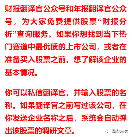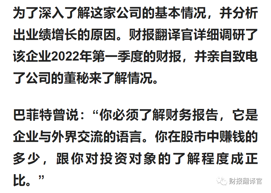(文章的最后翻译官会告诉大家该企业的名称和股票的代码,请先客观中正地了解完公司的基本情况,再去揭晓最终的答案)