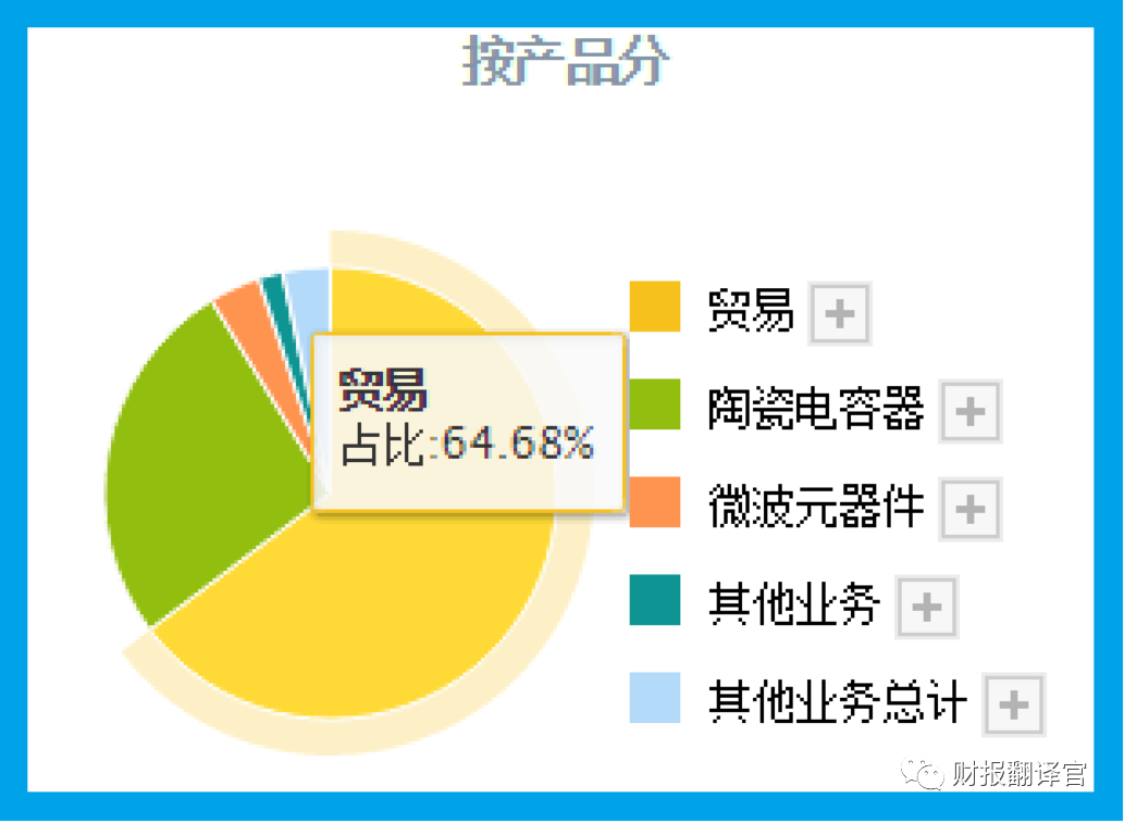 这家企业贸易业务的收入占比为65%,陶瓷电容器的收入占比为27%,微波元器件的收入占比为4%。