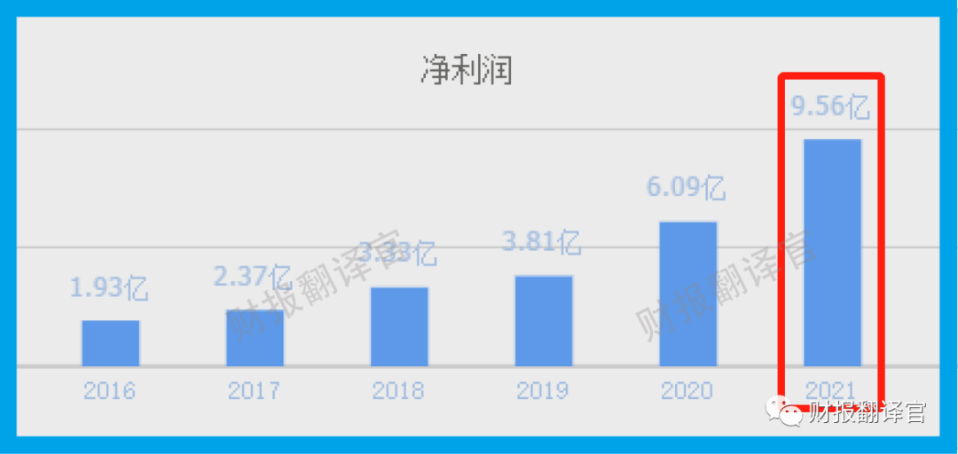 目前这家公司的历史业绩已经连续10年实现了大幅度的增长,并在2021年以9.56亿元的净利润创出了历史新高。