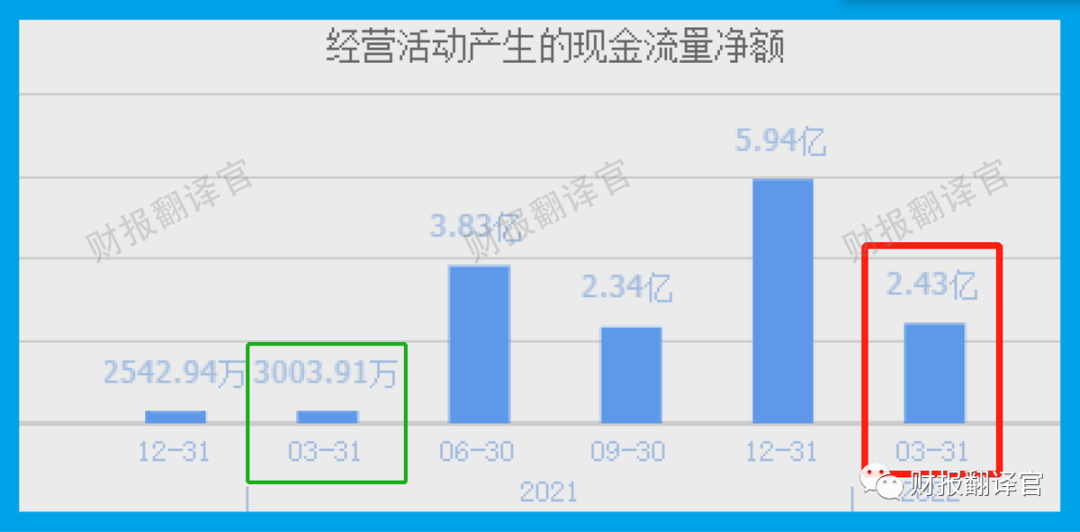 2022年第一季度,该企业的现金流量净额为2.43亿元,同比大幅增长了708%。