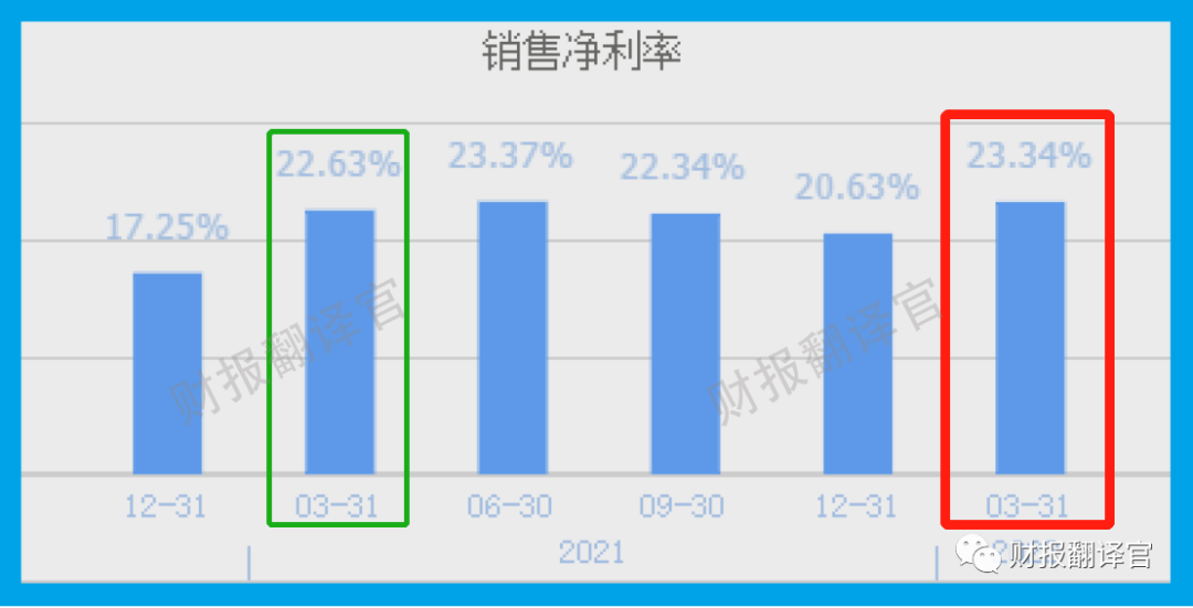 2021年第一季度,这家企业的销售净利率只有22.63%。到了2022年第一季度,公司的销售净利率就达到了23.34%,同比增长了3%。
