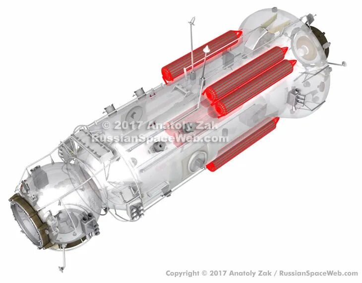 除了DOS-7核心舱、量子一号实验舱与美国航天飞机对接舱,其余的实验舱如量子二号、晶体号、光谱号、自然号舱段都是由TKS飞船发展而来。它们的设计经验为后续FGB曙光号功能货舱的研发打下了坚实的基础。