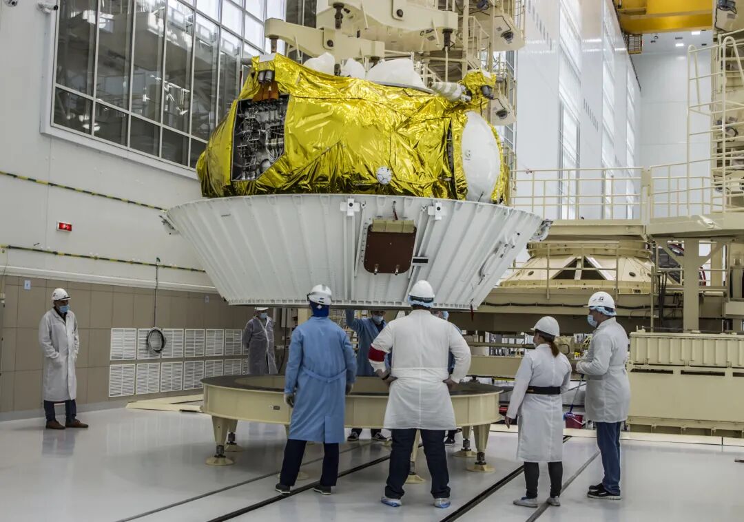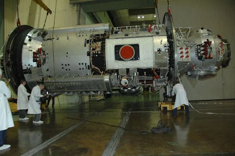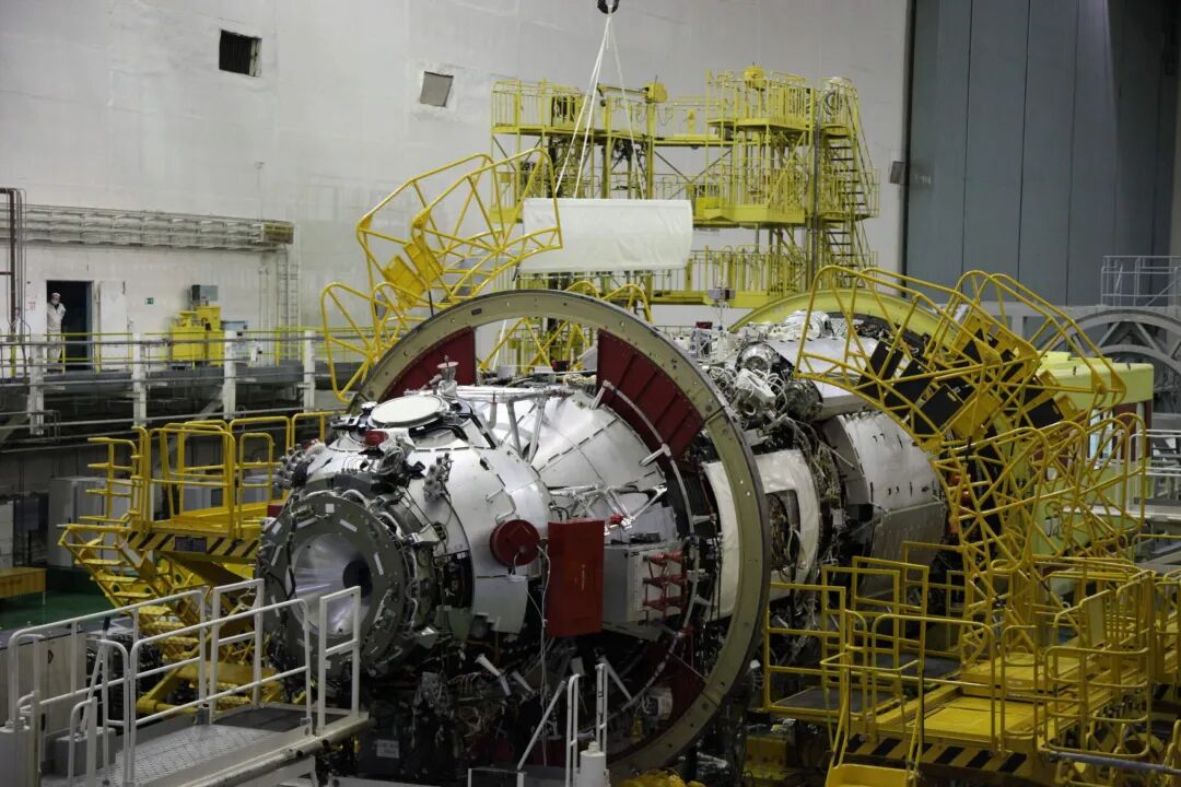 正在拜科努尔航天发射场254场区内进行总装作业的MLM“科学号”实验舱