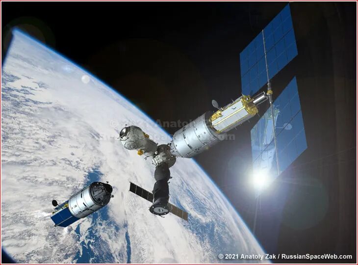 2021年4月23日,俄罗斯能源航天火箭公司在莫斯科进行了一场公开的记者展示会,展示会上俄方详细介绍了多次调整后的俄罗斯新空间站方案并推出新空间站舱段阶段成果向媒体进行了展示。新舱段的建造如上文所述分为2期建设: