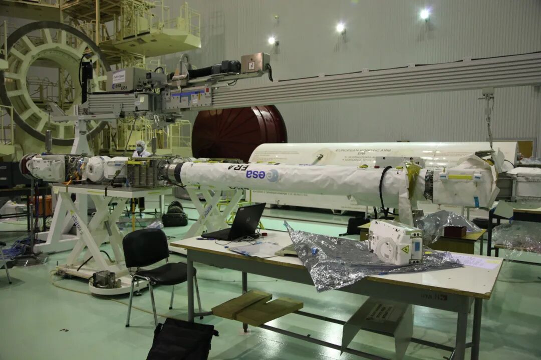 抵达拜科努尔航天发射场254厂房的欧洲航天局机械臂,原计划2009年由奋进号航天飞机分别携带进入太空