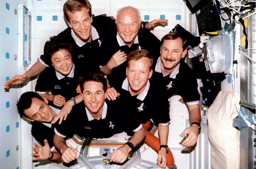 发现号STS-95任务乘组,77岁高龄的约翰·格伦再次进入太空