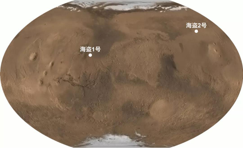 海盗1号和2号着陆点。底图:MGS