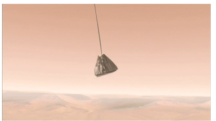 自此,反冲火箭、气囊和空中吊车成为火星着陆三大法宝。来源:NASA/JPL [23]