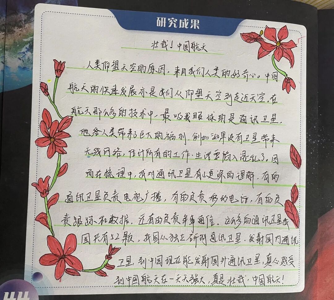 中国航天事业的飞速发展,让我们心中充满了骄傲和自豪,同时也产生了浓厚的好奇心和兴趣。这个暑假,力学小学90后青年教师与儿童一起开启了《壮哉!中国航天》研究之旅,从研究的角度再一次认识中国航天的相关信息,真是别有一番滋味,别有一番收获!