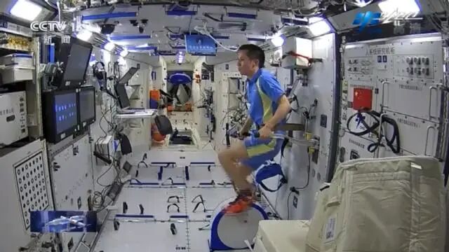太空健身房与地球的不同。在健身区,核心舱内有太空自行车、太空跑台、抗阻锻炼装置等设施。与地面上的跑步机不同,太空跑台增加了重力模拟装置,可施加一定压力将航天员束缚在跑步机上。如此一来,航天员可以在相当于正常重力的环境下运动,既锻炼了骨骼肌,也可通过压迫骨骼刺激骨的重建,有效应对失重给人体带来的一系列影响。