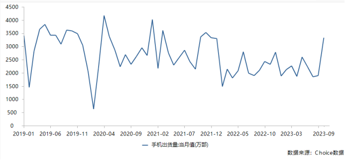 图:手机出货量:当月值(单位:万部) 来源Choice