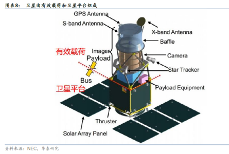 其中,卫星制造环节,又可分为卫星平台、卫星载荷(任务载荷)。