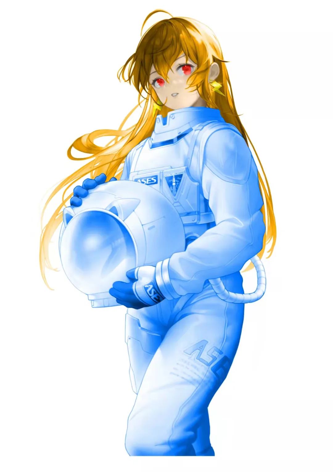 闪闪发光的眼睛里是探索的激情,饱含着探索太空的坚定信念。相较于其他设计,这套颜色搭配更加写实,大面积纯白的宇航服加上蓝色的边,让我们感受到了宇航员职业的神圣。