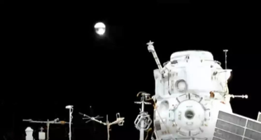 ▲图中的白色亮点就是俄罗斯宇航员手动释放的小卫星