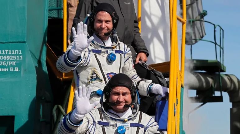 ▲刘培强与俄罗斯宇航员
