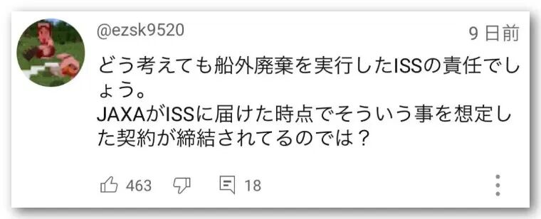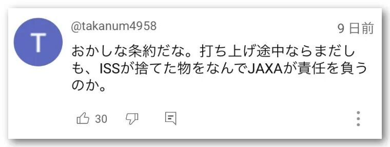 奇怪的条约。发射过程中的话还好说,可ISS扔东西,为什么要JAXA担责任?