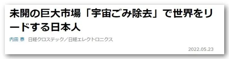 2022年,日本官方提出要开发庞大的“太空垃圾清除”市场,国家给扶持政策,让日本人用日本技术,做这一领域的领头羊。