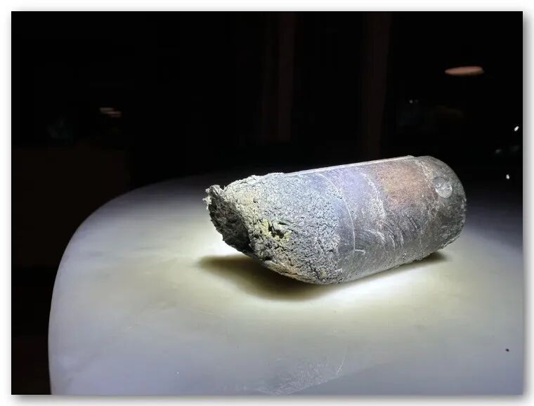 硬物呈圆筒状,10来公分长,重约900克。