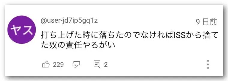 因此,即便扔垃圾的是国际空间站,但由于发射它的是日本JAXA,那么JAXA就有可能被问责。