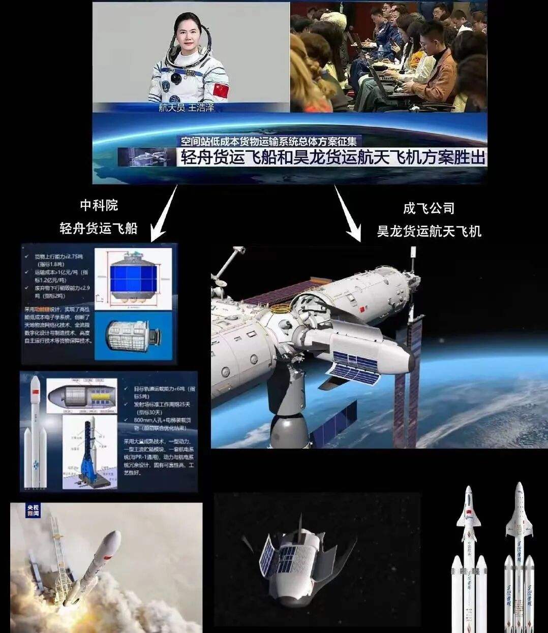 其实,中国空间站这两天也不是一点儿新闻没有,还是有些振奋人心的新消息的。同样是我载人航天工程办公室在神舟19号任务发布会现场公布的信息,中国空间站的低成本货物运输总体方案正在稳步推进中,目前有两个项目已经通过初步评审,获得第二阶段开发合同,制造技术验证机进行飞行验证。
