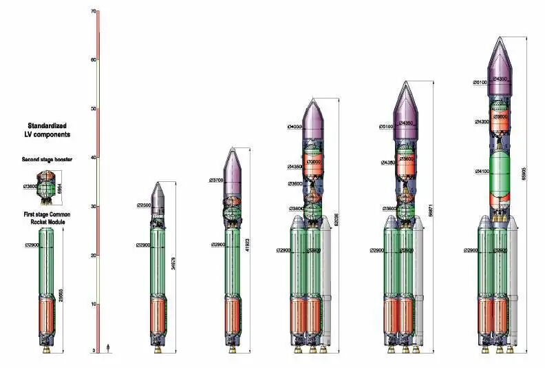Angara系列中的1.1,A3,A5P,A5V,A7五种火箭的对比