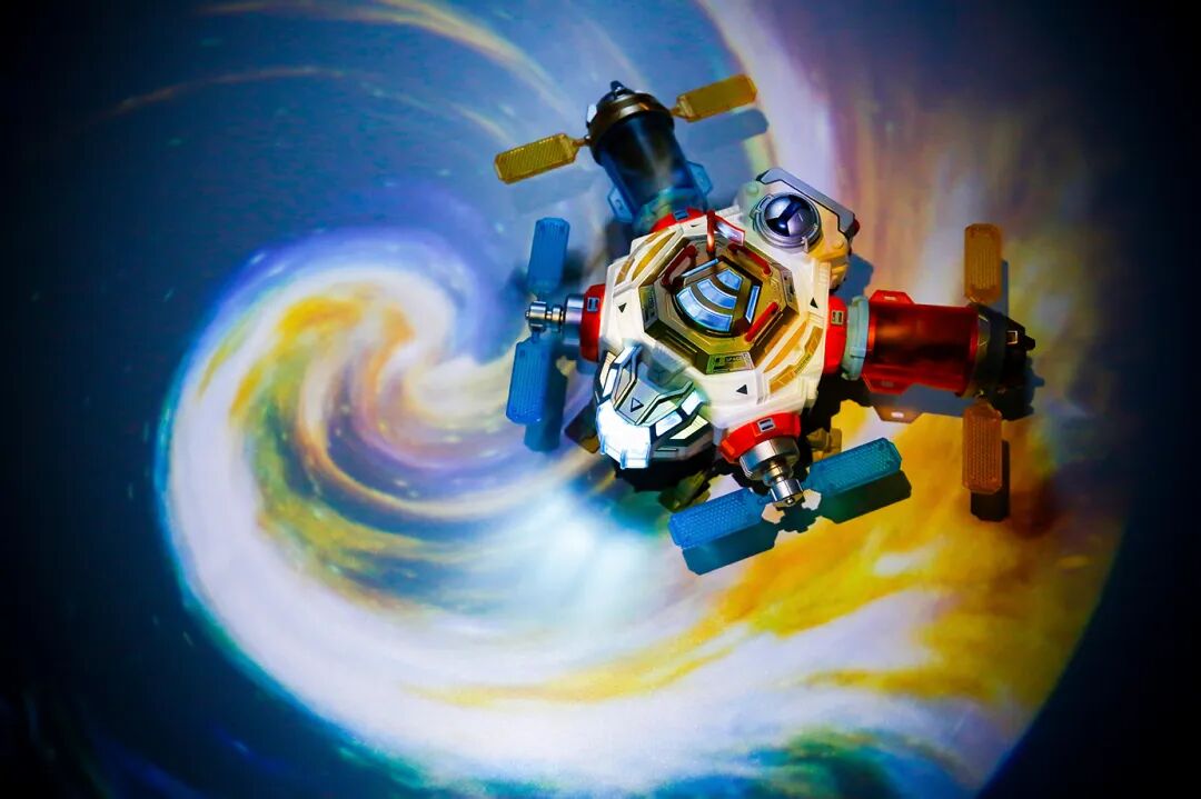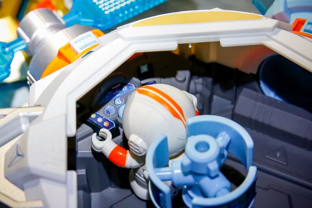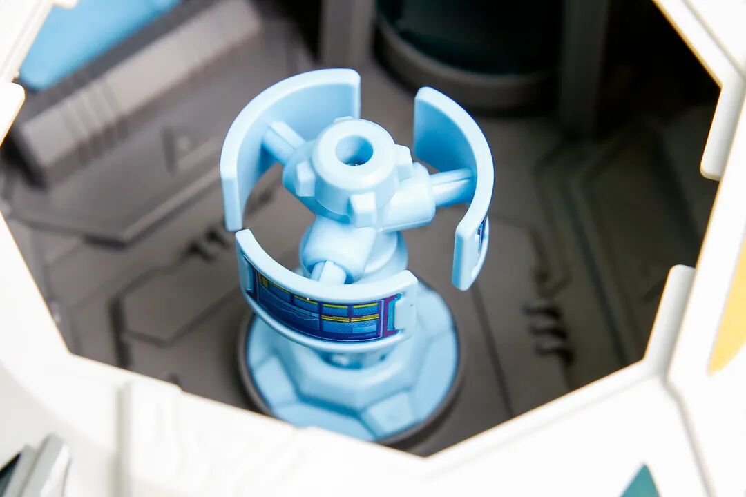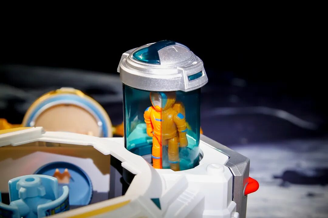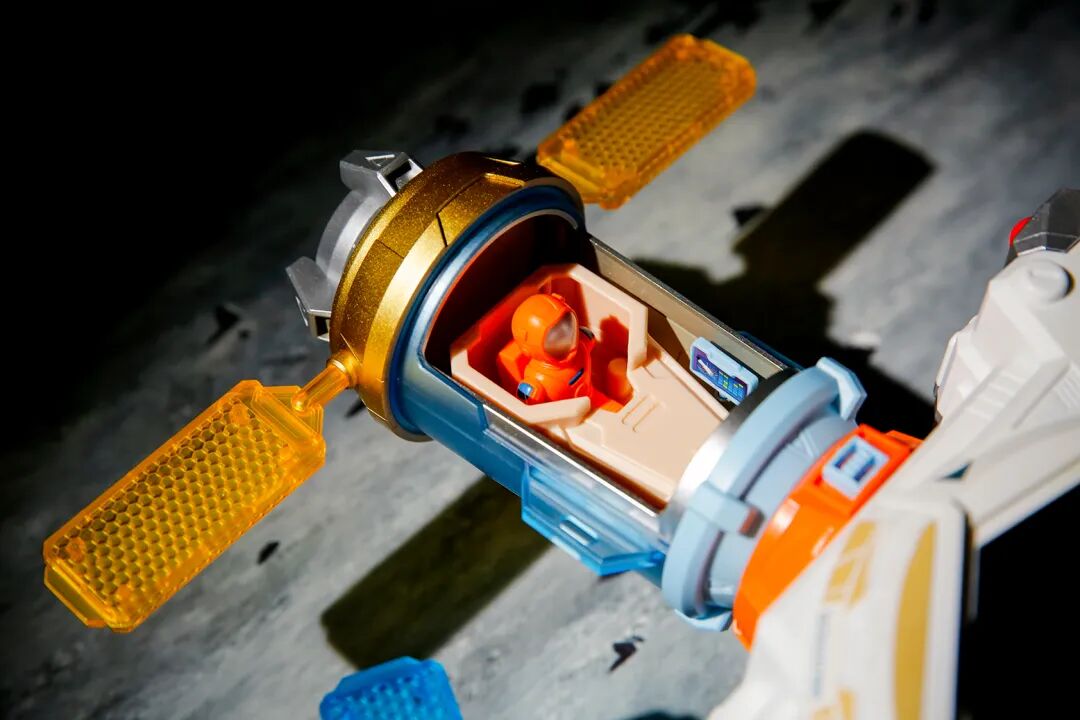 我们来看看着陆舱,看起来很逼真,它可以让船员自由进出,可以转动,放入宇航员后旋转半圈,就可以让宇航员成功进入中央舱体。