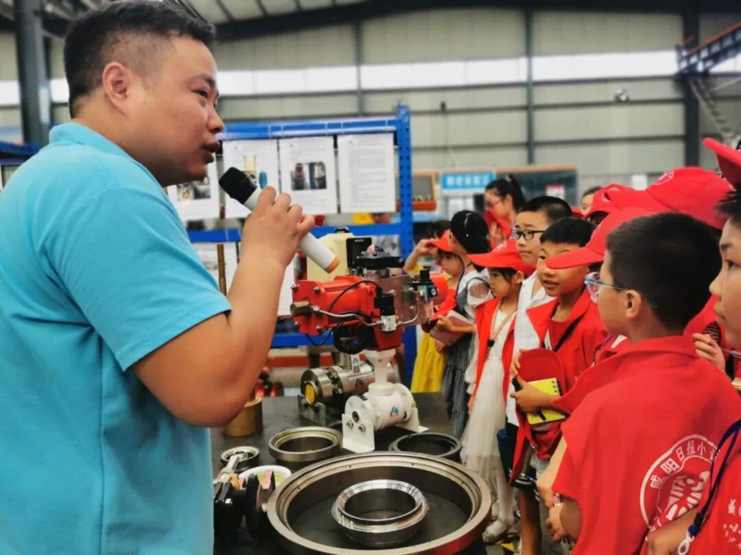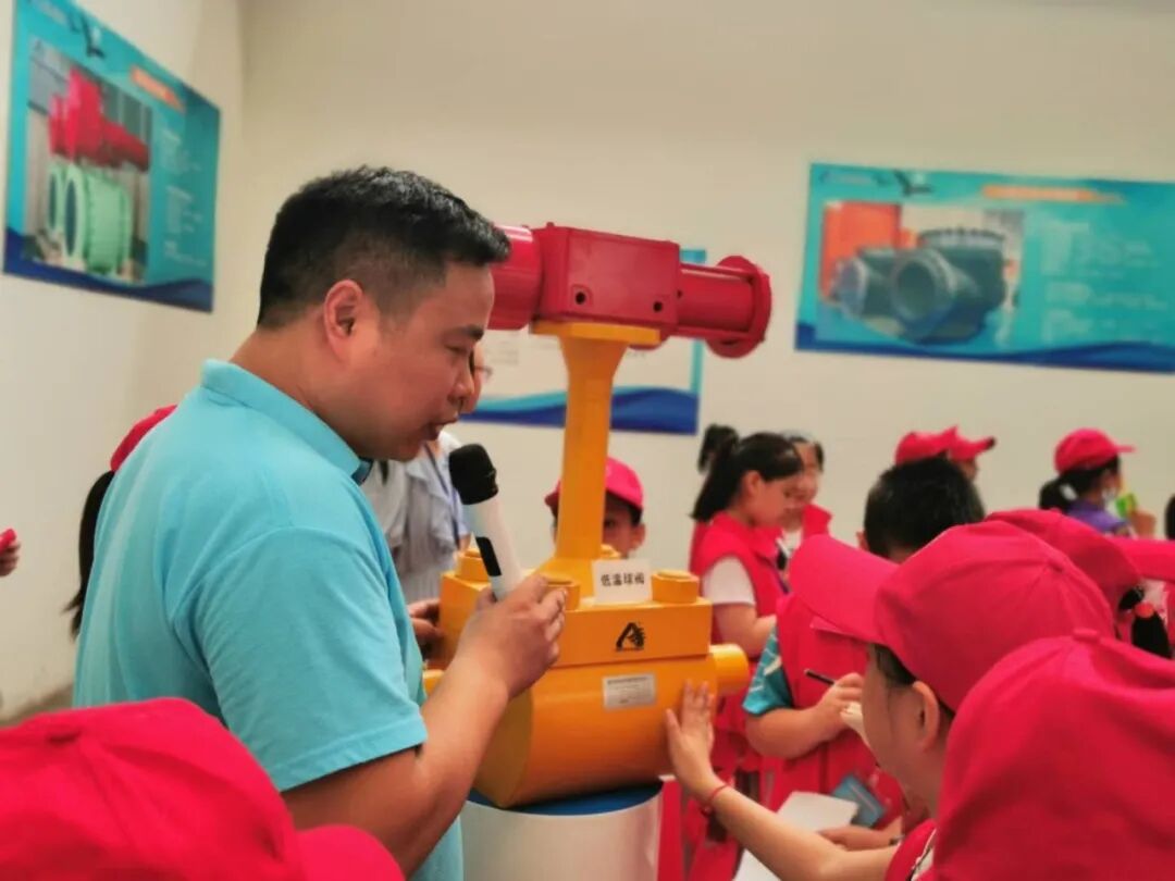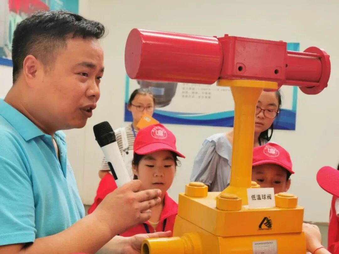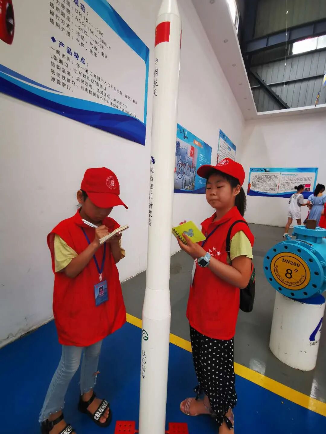 在零件加工车间, 讲解员用通俗易懂的语言为大家讲解了两瓣式浮动球阀、硬密封、双球阀等相关知识,讲到PEEK材料时,小记者们都惊呆了这种材料竟然可以替换人体骨骼,能耐腐蚀、耐辐射、耐358度高温广泛应用于医疗。小记者们还参观了二级火箭的模型,了解了火箭主要由结构系统、动力系统、控制系统三大系统构成。结构系统是火箭的躯壳,保护内部各组织;动力系统是火箭的生命之源,由燃料部分和发动机部分组成;而控制系统就像是大脑,指挥火箭控制飞行速度、工作方式以及确定飞行目标。讲解员还讲了1974年,长征二号运载火箭首次发射过程中由于导线断裂,导致火箭飞行姿态失去控制而致发射失败。听到这一段故事,小记者们领悟到了科学技术来不得半点马虎、细节决定成败的道理。