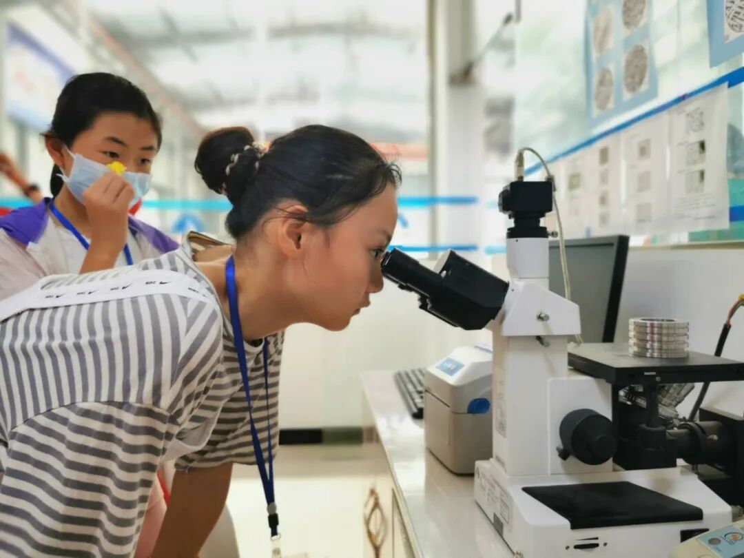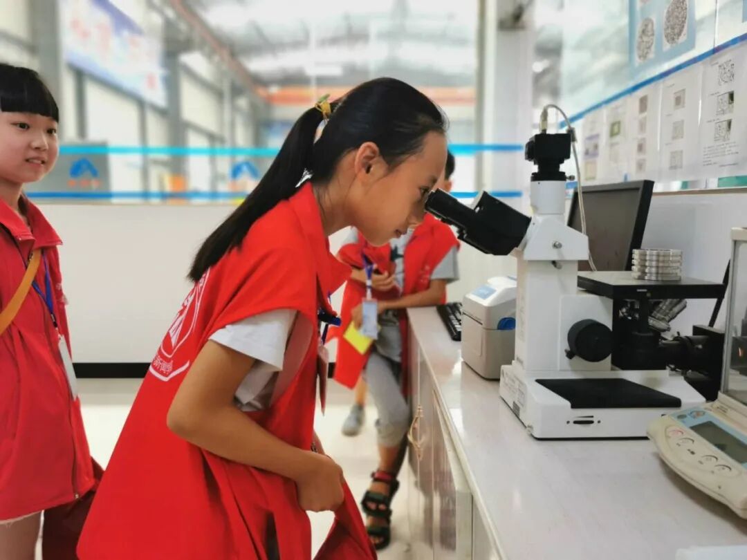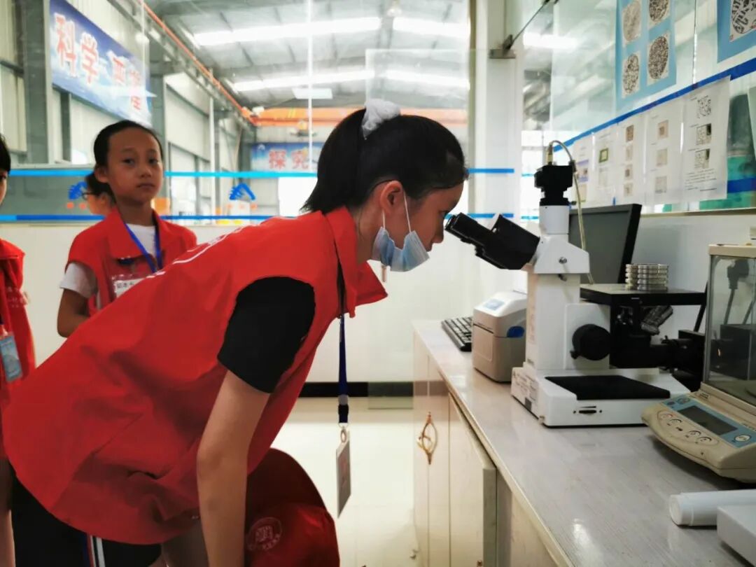 在精密实验室, 小记者拿出采访本认真做笔记。讲解员耐心地带领小记者观看了超声波测厚仪、涂层测厚仪、便携式里氏硬度计、显微镜等,并动手操作显微镜观察金属产品的细微刮痕,小记者好奇地提问,认真做记录。“收获太大了,我学到了很多知识,我要讲给妹妹听。”“我从小对火箭很感兴趣,我长大要成为火箭专家,要成为航天科学家。”这次活动让小记者收获满满,他们开心地讨论着自己的所见所闻。于这些小记者们来说,平日里只能在电视或书本上才能看到,突然可以亲手触摸,真真切切地感受,他们的惊喜之情溢于言表,纷纷称奇。更有小记者在参观火箭模型时,当场表示,自己从现在开始要好好学习,将来也要造火箭。