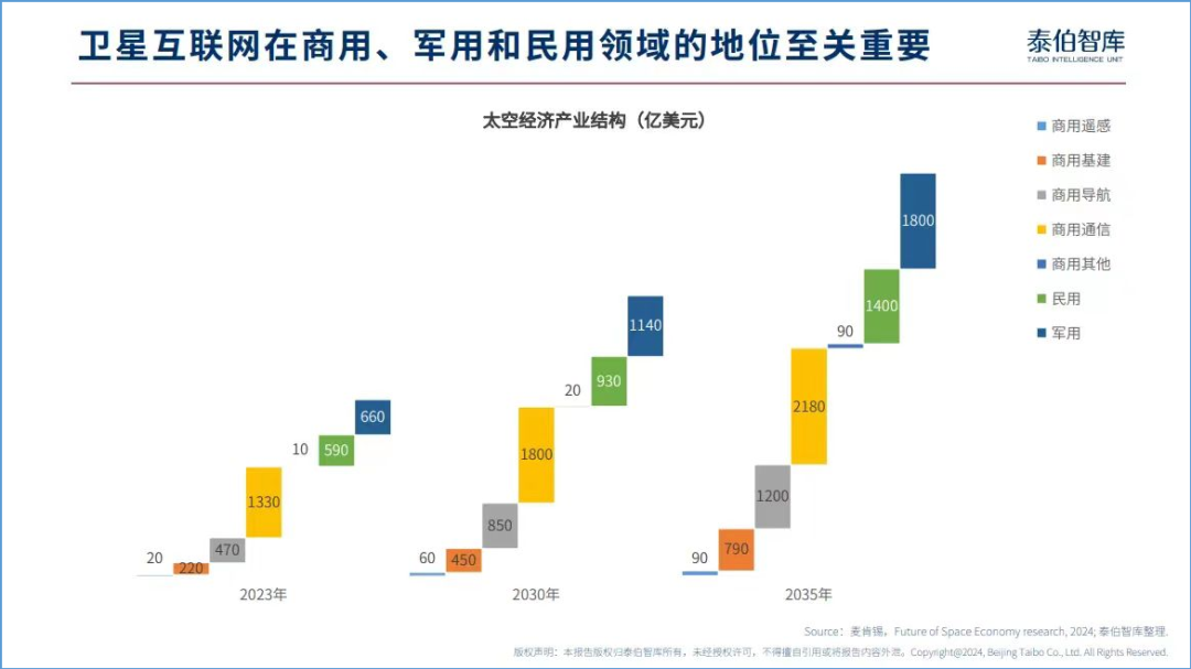 泰伯智库预测,未来10年,卫星互联网通信将在太空经济中占有相当大的地位。