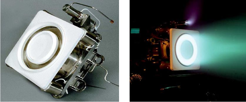 同MUOS系统类似,AEHF使用的卫星平台同样采用了电推进系统,包括4台用于轨道转移和位置保持的BPT-4000氖离子霍尔效应推力器——这与以往A2100平台系列采用电弧推进器不同。每个霍尔效应推力器质量7.5kg,尺寸约16cmx22cmx27cm,标称功率4.5kW,标称电压350V,推力约270mN,比冲1950s。