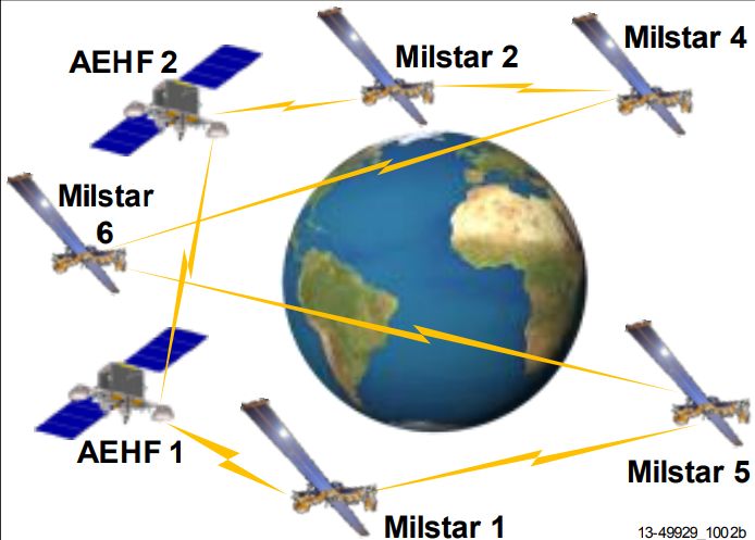 “先进极高频”(AEHF)通信系统于2010年8月12日发射了第1颗星,随后2012年,2013年和2018年分别发射了一颗,第五颗星由于其运载火箭“宇宙神-5”技术故障推迟到2019年8月后发射,目前尚未完成组网,已发射部分与“军事星”组合运行。AEHF系统的空间部分将由六颗卫星组成,第二代“军事星”仍在使用中,这些卫星将覆盖北纬65°和南纬65°的地球表面。对于北极地区,增强型极地系统(Enhanced Polar System )可作为AEHF的辅助设备,以提供辅助EHF覆盖。