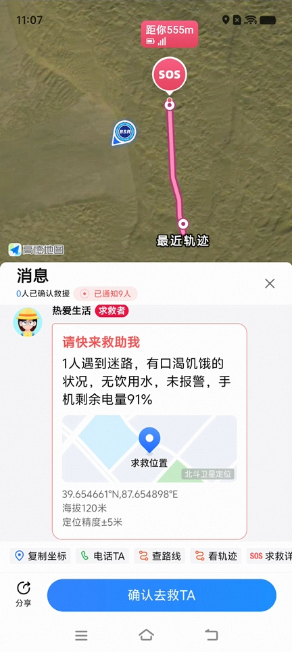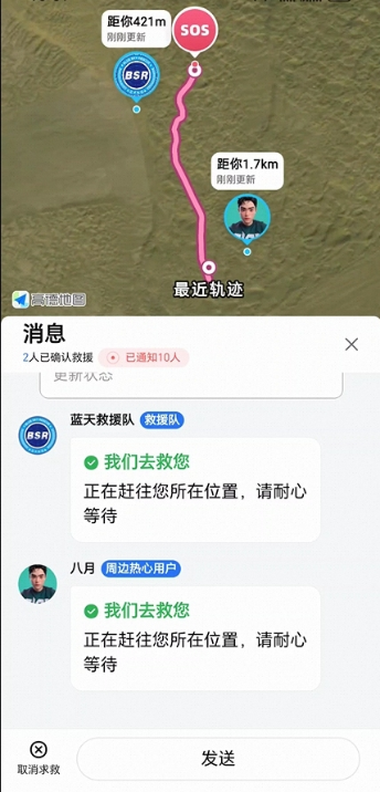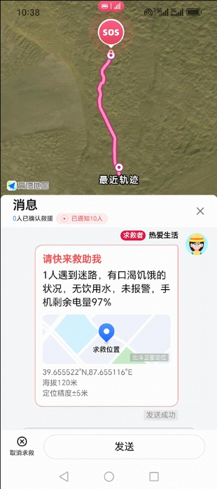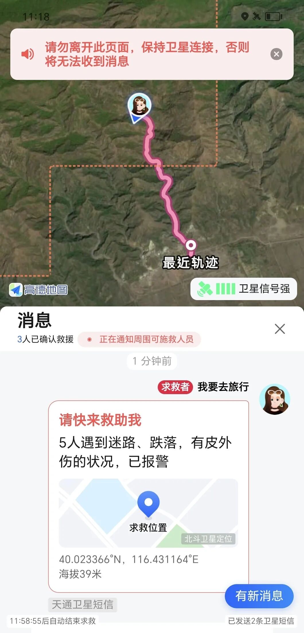 高德地图卫星求救再增新功能:直连北斗卫星无网求救