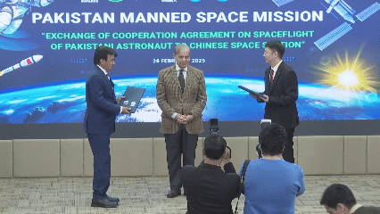 与巴基斯坦太空与高层大气研究委员会在巴基斯坦首都伊斯兰堡,正式签署《关于选拔、训练巴基斯坦航天员并参与中国空间站飞行任务的合作协议》,开启了中巴两国在载人航天领域深化合作的新篇章,迈出了中国选拔训练外籍航天员参与中国空间站飞行任务的第一步。 根据中国空间站的飞行任务规划安排,将在未来几年内择机安排巴基斯坦航天员与中国航天员一道进入中国空间站执行短期飞行任务。