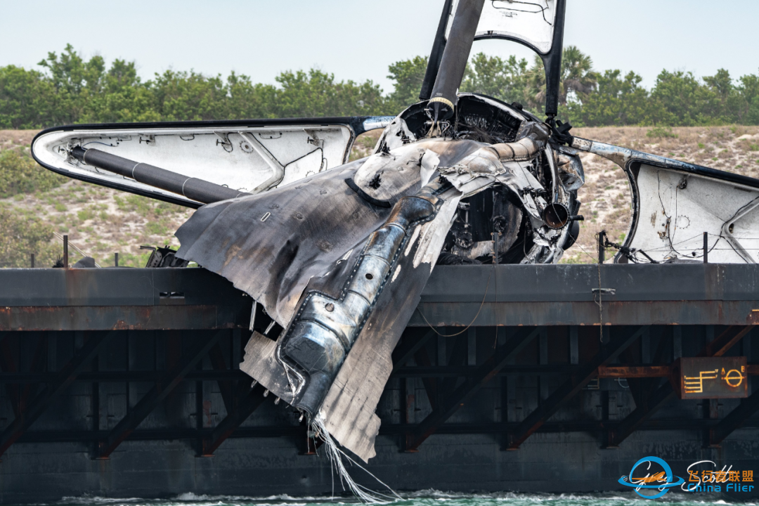SpaceX 前几天成功执行任务后,“回收失败”而被损毁的猎鹰 9 号火箭一级助推器 B1086,现在它的残骸已经运回港口了。