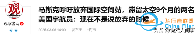 参考资料:马斯克呼吁:放弃国际空间站!滞留太空9个月的两名美国宇航员回应了——每日经济新闻马斯克呼吁放弃国际空间站,滞留太空9个月的两名美国宇航员:现在不是说放弃的时候——观察者网马斯克呼吁:放弃国际空间站!滞留太空9个月的两名美国宇航员回应了——红星新闻
