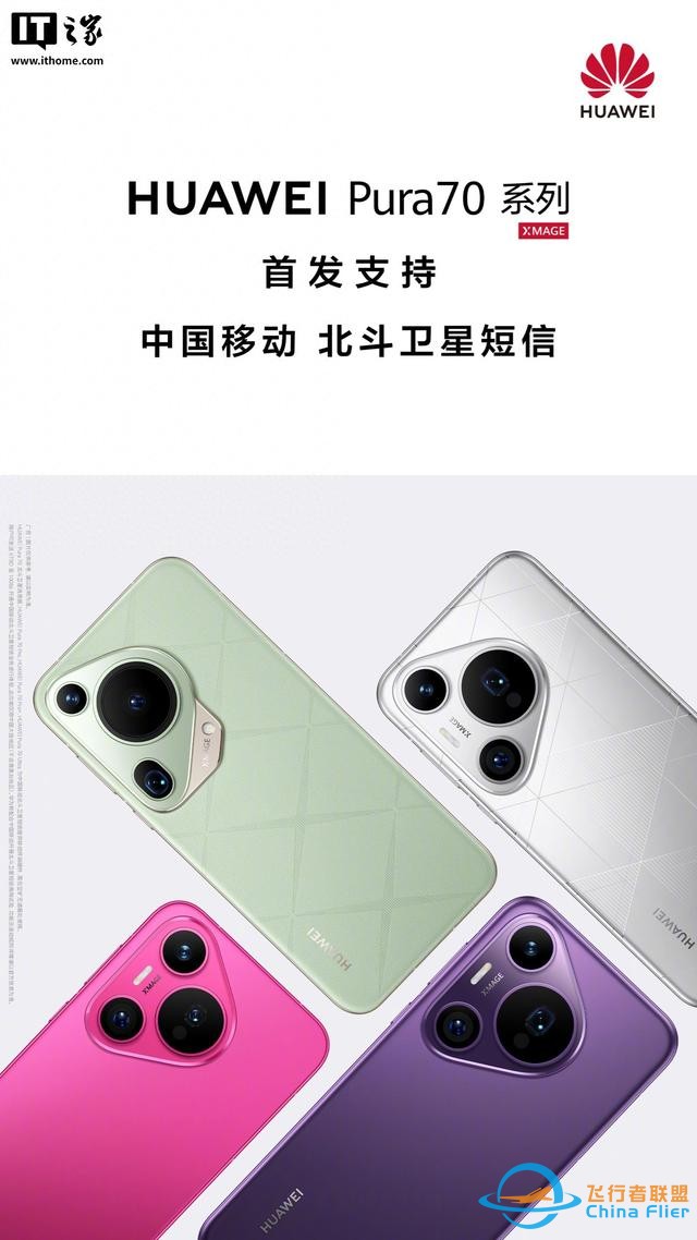 IT之家 3 月 9 日消息,去年 8 月,华为宣布旗下 Pura70 系列手机首发支持中国移动北斗卫星短信功能。后续发布的 Mate 70、Mate X6 等机型也均支持该卫星通信功能。