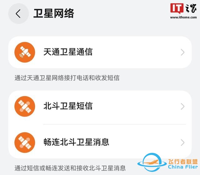 ▲ 华为 Mate 60 Pro+ 卫星通信功能页面运营商北斗卫星短信功能详情如下(该功能新适配机型已做字体加粗处理):